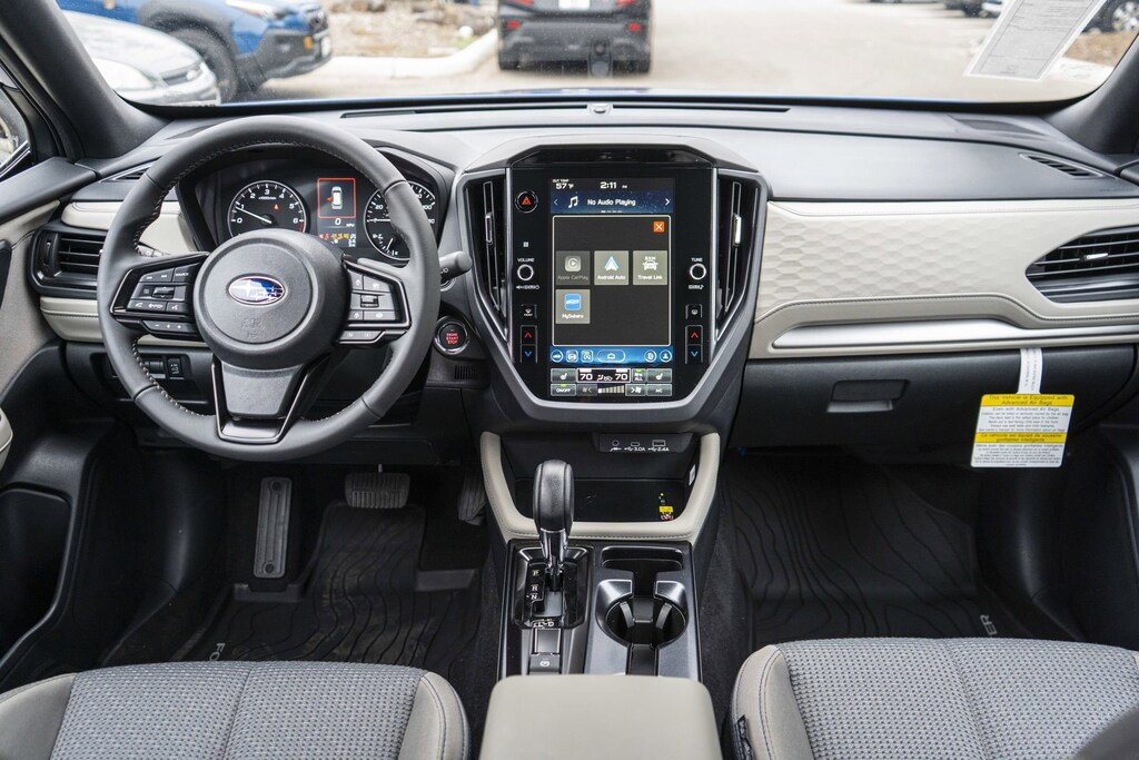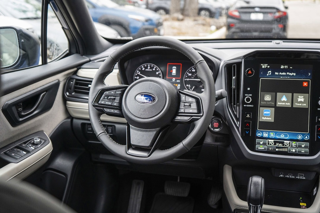 A comfortable ride with plenty of style! All of the premium features expected of a Subaru are offered, including: a leather steering wheel, a built-in garage door transmitter, and more. Smooth gearshifts are achieved thanks to the 2.5 liter 4 cylinder engine, and for added security, dynamic Stability Control supplements the drivetrain.
