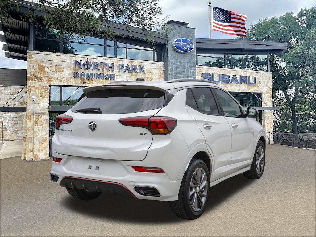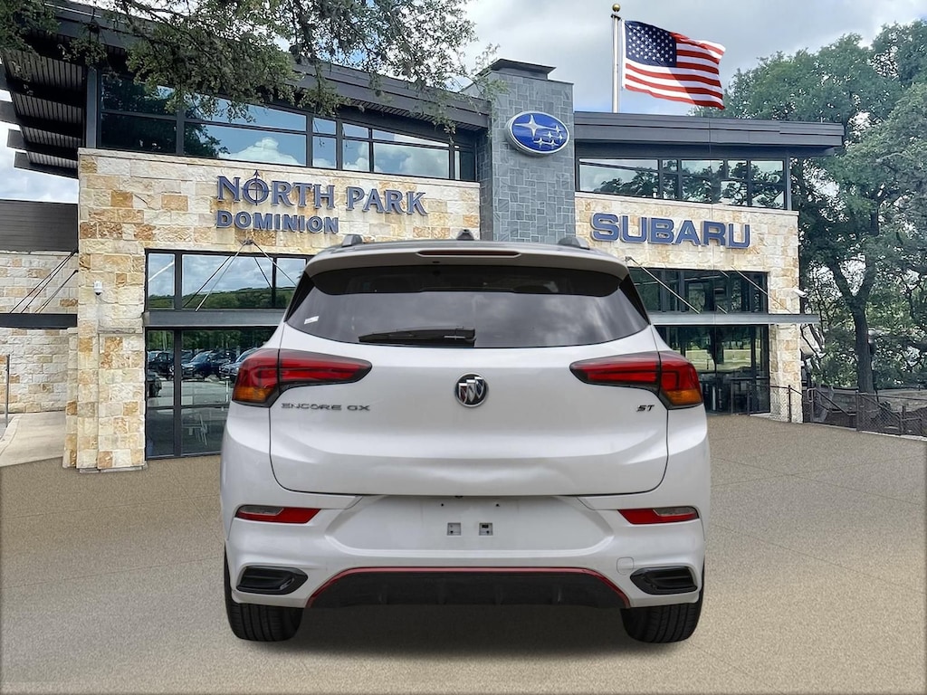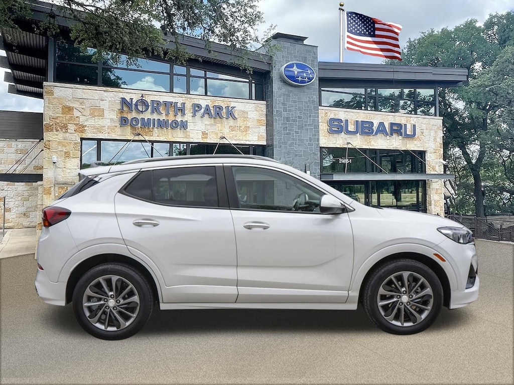 Disclaimer: Please contact us to confirm vehicle availability and pricing. North Park Subaru at Dominion is honored to offer this wonderful 2022 Buick Encore GX Select. Well equipped with Hands-Free Power Liftgate Package (Hands Free Power Liftgate), Preferred Equipment Group 1SD (Heated Driver & Front Passenger Seats), Sport Touring Package (18" Aluminum Wheels, Body Color Rocker Moldings, Body-Color Bodyside Moldings, Custom Grille w/Red Accents, Red Front & Rear Bumper Protective Molding, Sport Front Bumper w/Red Accents, Sport Rear Bumper w/Red Accents, and Sport Touring Badge), 18" Machined Aluminum Wheels, 2 USB Ports w/Auxiliary Input Jack, 2-Way Power Driver Lumbar Control, 4-Way Manual Passenger Seat Adjuster, 4-Wheel Disc Brakes, 5.45 Final Drive Axle Ratio, 6 Speakers, 8-Way Power Driver Seat Adjuster, ABS brakes, Air Conditioning, All-Weather Floor Liners (LPO), Alloy wheels, AM/FM radio: SiriusXM, Auto High-beam Headlights, Automatic temperature control, Brake assist, Bumpers: body-color, Cloth w/Leatherette Seat Trim, Compass, Delay-off headlights, Driver door bin, Driver vanity mirror, Dual front impact airbags, Dual front side impact airbags, Electric Auxiliary Heating/Defroster, Electronic Stability Control, Emergency communication system: OnStar and Buick connected services capable, Enhanced Performance 6-Speaker System, Front anti-roll bar, Front Bucket Seats, Front Center Armrest, Front dual zone A/C, Front fog lights, Front License Plate Bracket, Front reading lights, Front wheel independent suspension, Fully automatic headlights, Heated door mirrors, Heated front seats, Illuminated entry, Knee airbag, Low tire pressure warning, Occupant sensing airbag, Outside temperature display, Overhead airbag, Overhead console, Panic alarm, Passenger door bin, Passenger vanity mirror, Power door mirrors, Power driver seat, Power steering, Power windows, Radio data system, Radio: 8" Diagonal Buick Infotainment System, Rear reading lights, Rear seat center armrest, Rear side impact airbag, Rear window defroster, Rear window wiper, Remote keyless entry, Ride & Handling Suspension, Security system, SiriusXM Radio, Speed control, Speed-sensing steering, Split folding rear seat, Spoiler, Steering wheel mounted audio controls, Tachometer, Telescoping steering wheel, Tilt steering wheel, Traction control, Trip computer, Variably intermittent wipers, and Wireless Apple CarPlay/Wireless Android Auto.