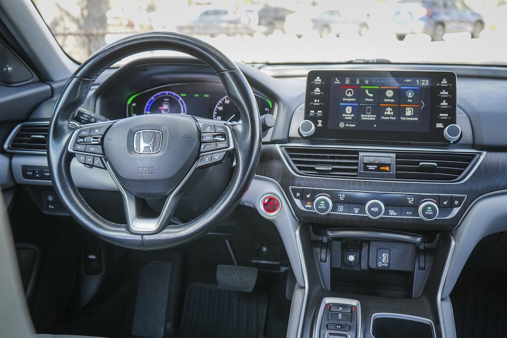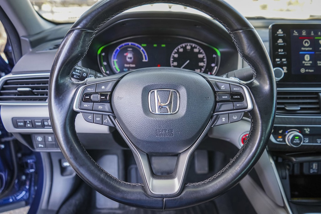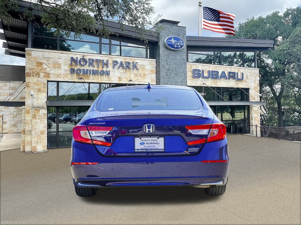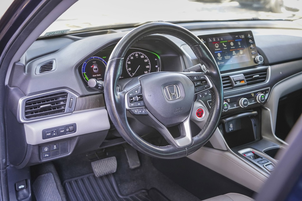 Disclaimer: Please contact us to confirm vehicle availability and pricing. North Park Subaru at Dominion is honored to offer this gorgeous 2020 Honda Accord Hybrid Touring. Well equipped with 10 Speakers, 17" Machine-Finished Alloy Wheels, 4-Wheel Disc Brakes, ABS brakes, Adaptive Cruise Control: Adaptive Cruise Control (ACC) with Low-Speed Follow, Adaptive suspension, Air Conditioning, Alloy wheels, AM/FM radio: SiriusXM, Apple CarPlay/Android Auto, Auto High-beam Headlights, Auto-dimming Rear-View mirror, Automatic temperature control, Blind Spot Information (BSI) System warning, Brake assist, Bumpers: body-color, Compass, Delay-off headlights, Driver door bin, Driver vanity mirror, Dual front impact airbags, Dual front side impact airbags, Electronic Stability Control, Emergency communication system: HondaLink, Exterior Parking Camera Rear, Forward collision: Collision Mitigation Braking System (CMBS) + FCW mitigation, Four wheel independent suspension, Front anti-roll bar, Front Bucket Seats, Front Center Armrest, Front dual zone A/C, Front fog lights, Front reading lights, Fully automatic headlights, Garage door transmitter: HomeLink, Heads-Up Display, Heated & Ventilated Front Bucket Seats, Heated door mirrors, Heated front seats, Heated rear seats, Illuminated entry, Knee airbag, Leather steering wheel, Leather-Trimmed Seats, Low tire pressure warning, Memory seat, Navigation System, Occupant sensing airbag, Outside temperature display, Overhead airbag, Overhead console, Panic alarm, Passenger door bin, Passenger vanity mirror, Power door mirrors, Power driver seat, Power moonroof, Power passenger seat, Power steering, Power windows, Radio data system, Radio: 450-Watt AM/FM/HD Premium Audio System, Rain sensing wipers, Rear anti-roll bar, Rear seat center armrest, Rear window defroster, Remote keyless entry, Security system, Speed control, Speed-sensing steering, Speed-Sensitive Wipers, Split folding rear seat, Steering wheel mounted audio controls, Telescoping steering wheel, Tilt steering wheel, Traction control, Trip computer, Turn signal indicator mirrors, Variably intermittent wipers, and Ventilated front seats.