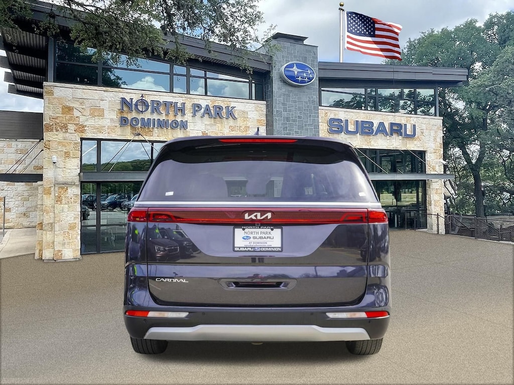 Disclaimer: Please contact us to confirm vehicle availability and pricing. North Park Subaru at Dominion is very proud to offer this outstanding-looking 2024 Kia Carnival EX. Well equipped with 10 Speakers, 3.51 Axle Ratio, 3rd row seats: split-bench, 4-Wheel Disc Brakes, ABS brakes, Air Conditioning, Alloy wheels, AM/FM radio: SiriusXM, Apple CarPlay & Android Auto, Artificial Leather Seat Trim, Auto High-beam Headlights, Automatic temperature control, Brake assist, Bumpers: body-color, Compass, Delay-off headlights, Driver door bin, Driver vanity mirror, Dual front impact airbags, Dual front side impact airbags, Electronic Stability Control, Emergency communication system, Four wheel independent suspension, Front anti-roll bar, Front Bucket Seats, Front Center Armrest, Front dual zone A/C, Front reading lights, Fully automatic headlights, Heated door mirrors, Heated Front Bucket Seats, Heated front seats, Illuminated entry, Knee airbag, Leather Shift Knob, Leather steering wheel, Low tire pressure warning, Navigation System, Occupant sensing airbag, Outside temperature display, Overhead airbag, Overhead console, Panic alarm, Passenger door bin, Passenger vanity mirror, Power door mirrors, Power driver seat, Power steering, Power windows, Radio: AM/FM/HD Audio System, Rear air conditioning, Rear anti-roll bar, Rear reading lights, Rear window defroster, Rear window wiper, Reclining 3rd row seat, Remote keyless entry, Security system, Speed control, Speed-sensing steering, Split folding rear seat, Spoiler, Steering wheel mounted audio controls, Tachometer, Telescoping steering wheel, Tilt steering wheel, Traction control, Trip computer, Turn signal indicator mirrors, Variably intermittent wipers, and Wheels: 7.5J x 19" Machine-Finished Alloy.