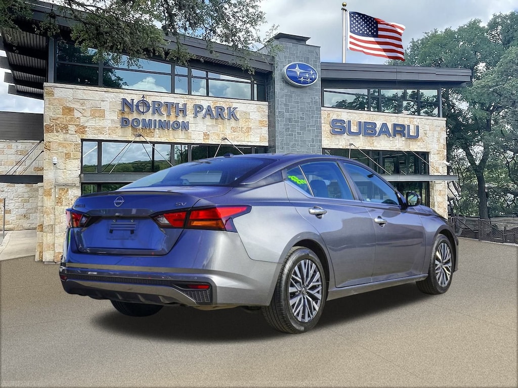 Disclaimer: Please contact us to confirm vehicle availability and pricing. North Park Subaru at Dominion is pleased to offer this great 2023 Nissan Altima 2.5 SV. Well equipped with 17" Machined Alloy Wheels, 4-Wheel Disc Brakes, 6 Speakers, ABS brakes, Air Conditioning, Alloy wheels, AM/FM radio: SiriusXM, Auto High-beam Headlights, Blind Spot Warning, Brake assist, Bumpers: body-color, Cloth Seat Trim, Delay-off headlights, Driver door bin, Driver vanity mirror, Dual front impact airbags, Dual front side impact airbags, Electronic Stability Control, Floor Mats/Trunk Mat/Hideaway Net, Four wheel independent suspension, Front anti-roll bar, Front Bucket Seats, Front Center Armrest, Front reading lights, Fully automatic headlights, Illuminated entry, Knee airbag, Low tire pressure warning, NissanConnect featuring Apple CarPlay and Android Auto, Occupant sensing airbag, Outside temperature display, Overhead airbag, Overhead console, Panic alarm, Passenger door bin, Passenger vanity mirror, Power door mirrors, Power driver seat, Power steering, Power windows, Radio data system, Radio: AM/FM Audio System, Rear anti-roll bar, Rear Parking Sensors, Rear reading lights, Rear seat center armrest, Rear side impact airbag, Rear window defroster, Remote keyless entry, Security system, Speed control, Speed-sensing steering, Speed-Sensitive Wipers, Split folding rear seat, Steering wheel mounted audio controls, Tachometer, Tech Spec Change, Telescoping steering wheel, Tilt steering wheel, Traction control, Trip computer, and Variably intermittent wipers.