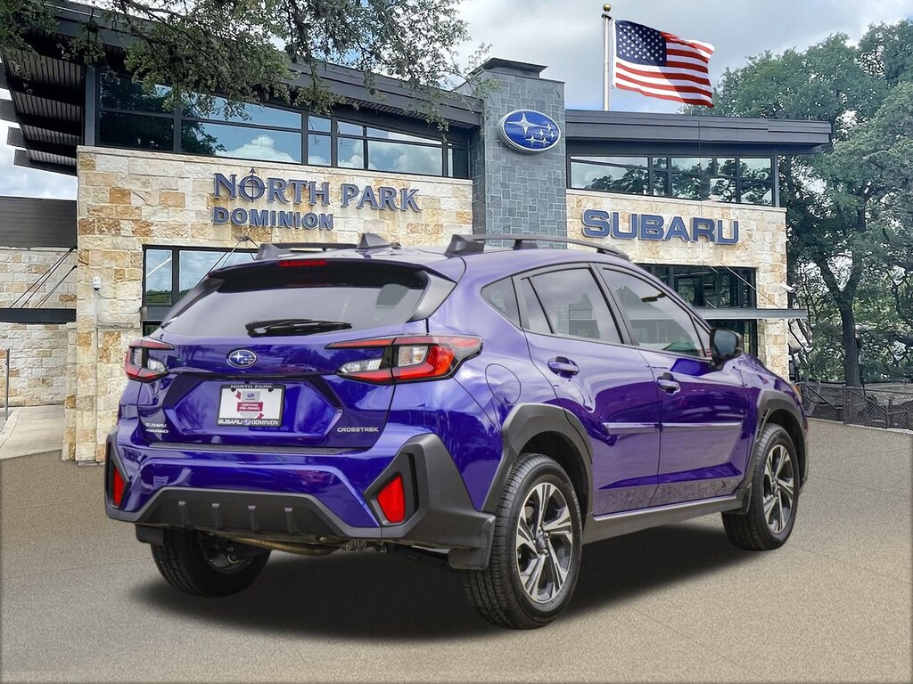 Disclaimer: Please contact us to confirm vehicle availability and pricing. North Park Subaru at Dominion is honored to offer this attractive 2025 Subaru Crosstrek Premium. Well equipped with Convenience Package #2 (Auto-Dimming Mirror w/Compass & HomeLink, Rear Bumper Cover, and Splash Guards), Standard Model, 4-Wheel Disc Brakes, 6 Speakers, ABS brakes, Aero Crossbar Set, Air Conditioning, Alloy wheels, AM/FM radio: SiriusXM, Anti-whiplash front head restraints, Auto High-beam Headlights, Automatic temperature control, Brake assist, Bumpers: body-color, Cloth Upholstery, Driver door bin, Driver vanity mirror, Dual front impact airbags, Dual front side impact airbags, Electronic Stability Control, Emergency communication system, Exterior Parking Camera Rear, Four wheel independent suspension, Front anti-roll bar, Front Bucket Seats, Front Center Armrest, Front dual zone A/C, Front fog lights, Front reading lights, Fully automatic headlights, Illuminated entry, Knee airbag, Low tire pressure warning, Occupant sensing airbag, Outside temperature display, Overhead airbag, Overhead console, Panic alarm, Passenger door bin, Passenger vanity mirror, Power door mirrors, Power steering, Power windows, Radio data system, Radio: Subaru 11.6" Multimedia Plus System, Rear anti-roll bar, Rear seat center armrest, Rear window defroster, Rear window wiper, Remote keyless entry, Security system, Speed control, Speed-sensing steering, Split folding rear seat, Spoiler, Steering wheel mounted audio controls, Tachometer, Telescoping steering wheel, Tilt steering wheel, Traction control, Trip computer, Turn signal indicator mirrors, Variably intermittent wipers, and Wheels: 17" x 7.0" J Machine Finish Aluminum-Alloy.